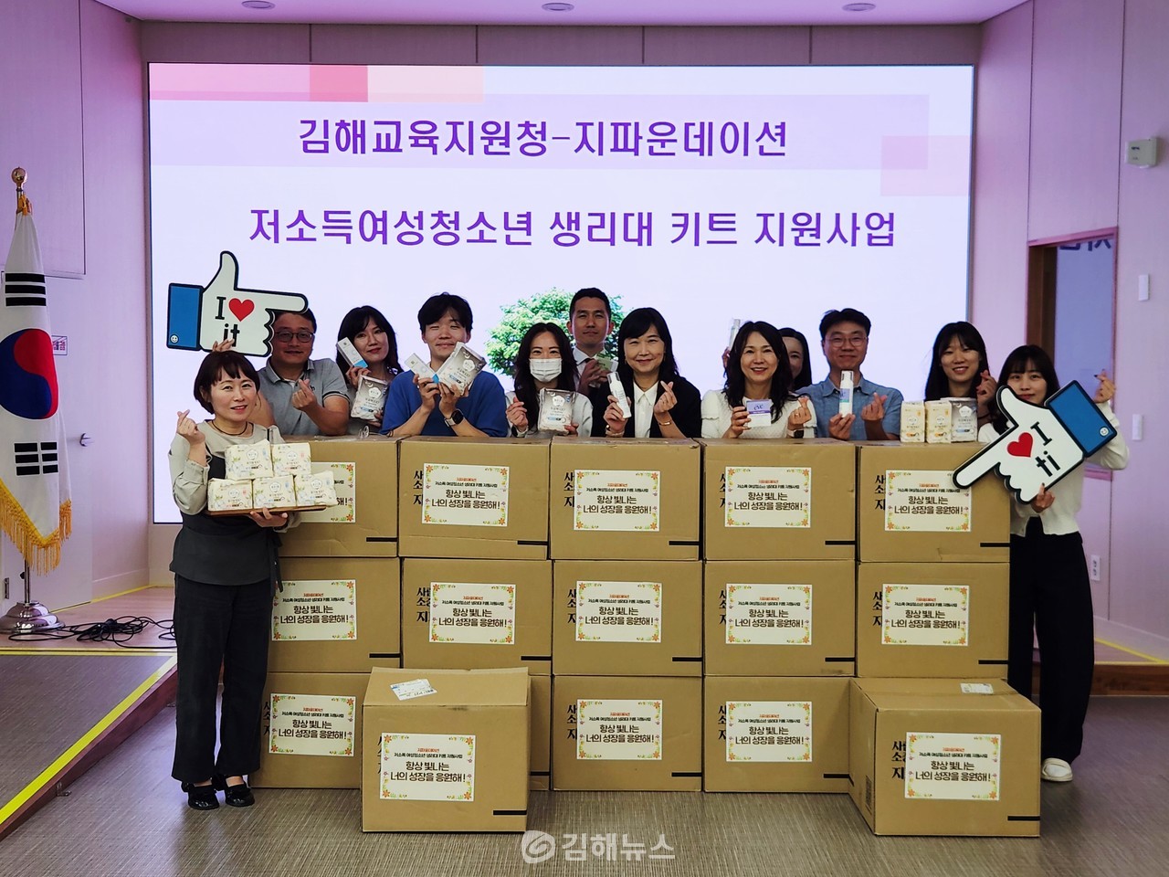 김해교육지원청은 21일, 국제개발협력 NGO단체 지파운데이션 기부로 관내 여중학생 17명에게 여성위생용품 키트 지원을 완료했다고 밝혔다.