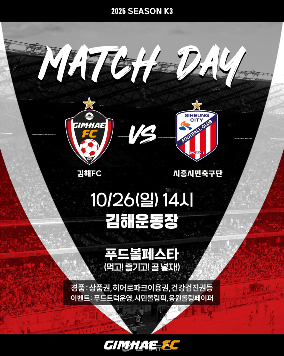 2025 K3리그 우승을 노리는 김해FC가 오는 26일 홈에서 시흥시민축구단과 우승컵을 놓고 물러설 수 없는 한판 승부를 펼친다.