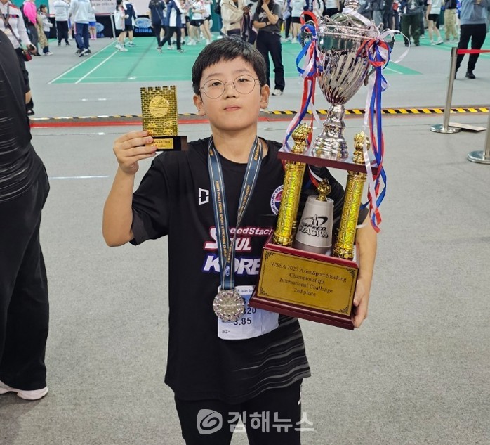 김해 구산초 양태호(5학년) 선수가 국가대표로 첫 출전한 '2025 세계스포츠스태킹협회(WSSA) 아시안챔피언십대회에서 개인전 은메달 등 6개의 메달을 획득해 화제다.