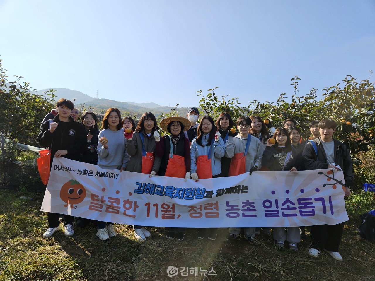 김해교육지원청은 지난 14일, 가을 단감 수확철을 맞아 진례면 단감 농가에서 농촌일손돕기 봉사활동을 실시했다.